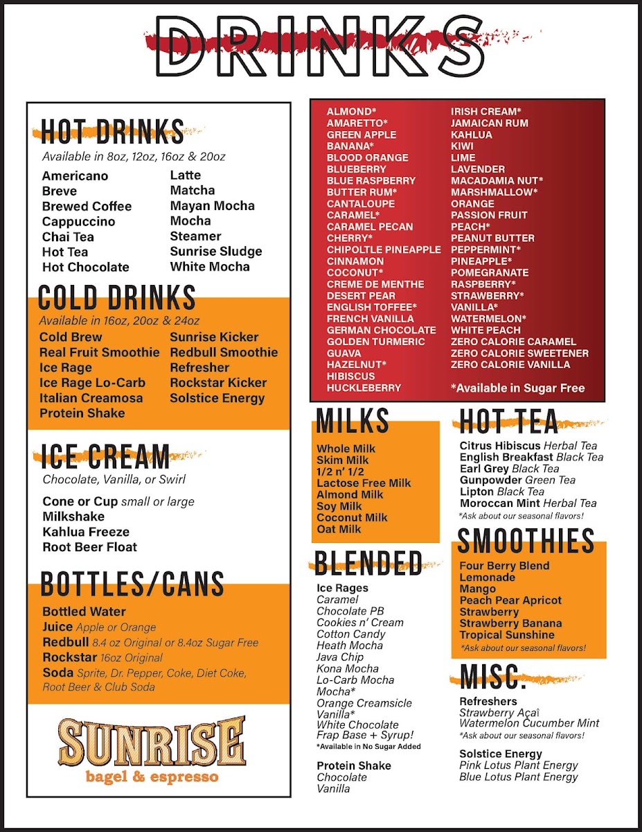 Despite the bustling morning rush, helpful staff members like Alex epitomize exceptional service, juggling orders and a friendly demeanor with grace. With convenient drive-thru service and a commitment to quality, Sunrise Bagel & Espresso not only satisfies your hunger but also provides a warm, inviting atmosphere. Whether you're craving a quick breakfast or a cozy place to sip coffee, this café is a must-visit!