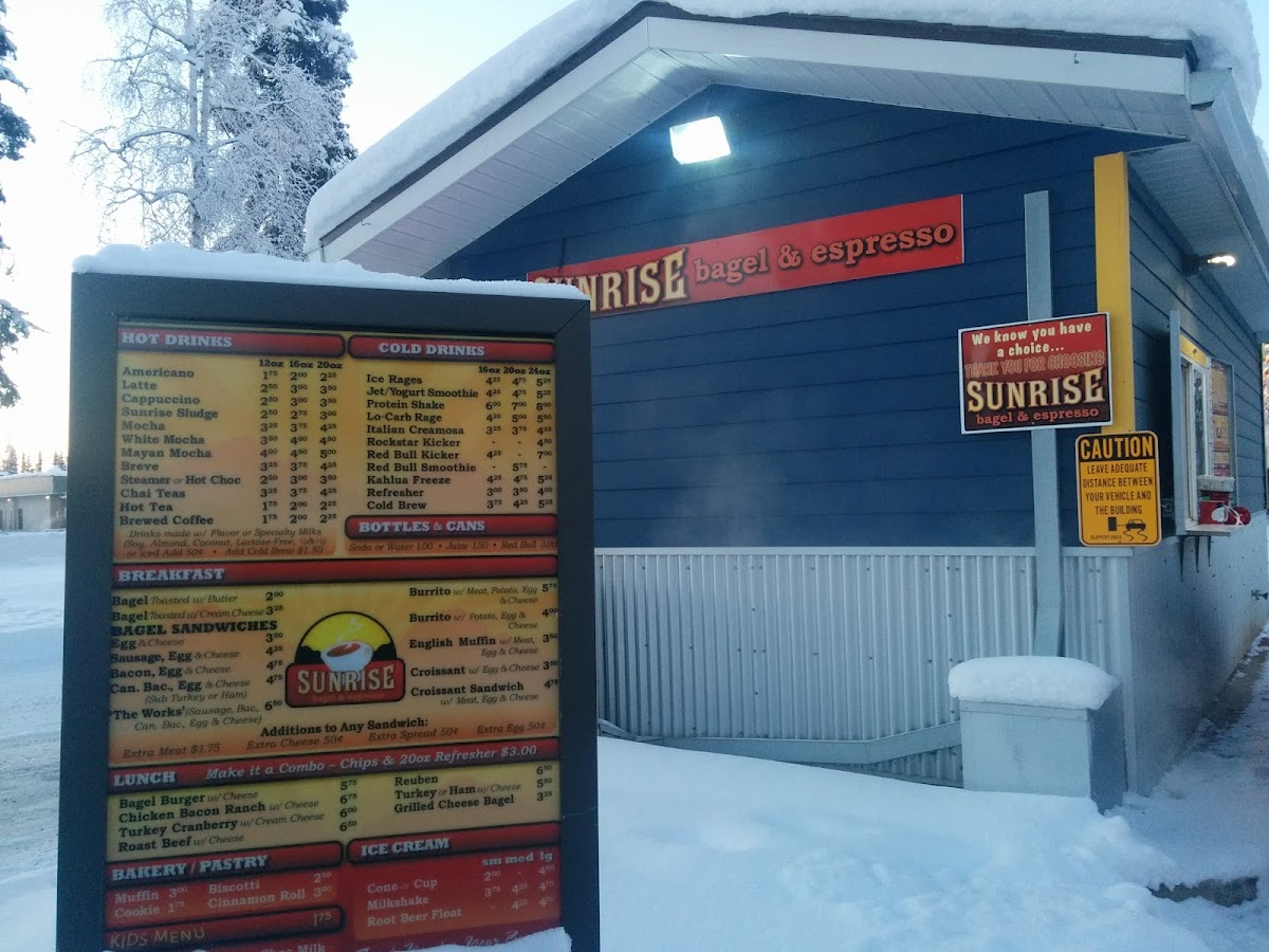 Welcome to Sunrise Bagel & Espresso, your go-to spot in Fairbanks for delicious bagels and expertly crafted coffee. Located at 3506 College Rd, this charming café features a menu that celebrates quality and flavor. Each bagel is made fresh, with standout options like the jalapeno bagel paired with veggie cream cheese, and no-meat burritos that cater to various dietary preferences. Customers rave about their rich cappuccinos and the acclaimed Chai Tea, celebrated for its unique spice blend.